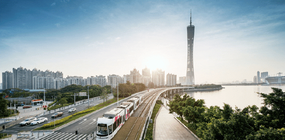 ▲現(xiàn)代鋼軌有軌電車(廣州海珠線)