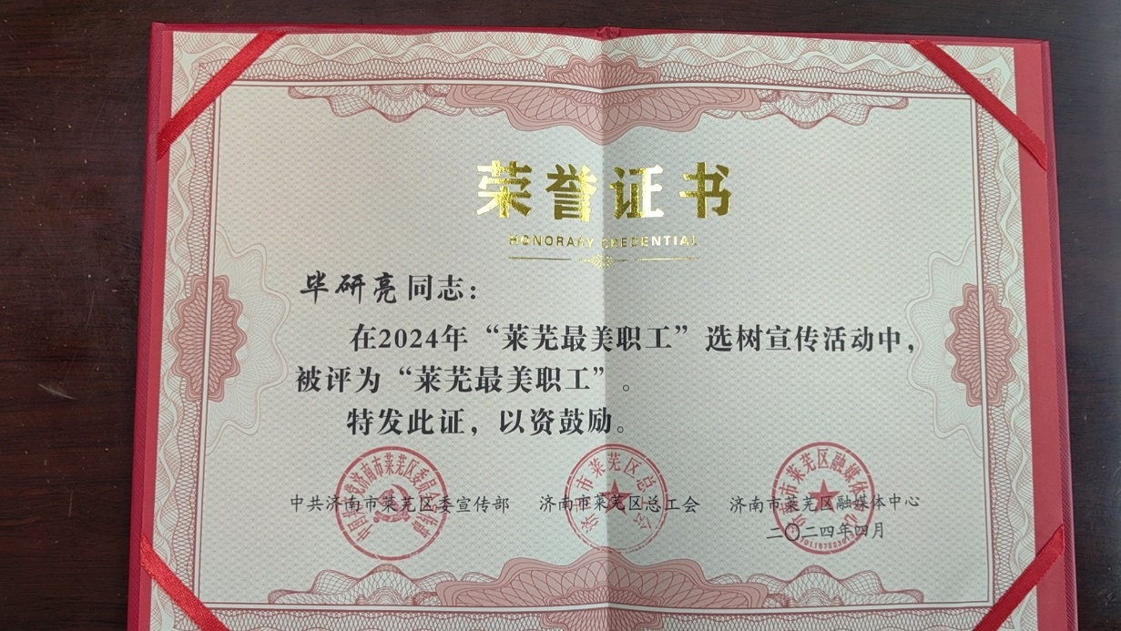 為全面貫徹習近平新時代中國特色社會主義思想和黨的二十大精神,落實習近平總書記關于工人階級和工會工作的重要論述,充分發揮工人階級主力軍作用,聚焦“項目深化年”工作動員大會精神,努力打造一支知識型、技能型、創新型產業工人隊伍,萊蕪區委宣傳部、區總工會、區融媒體中心開展了2024年“萊蕪最美職工”選樹宣傳活動。經基層單位審核推薦、初審、專家評審等階段,確定了2024年“萊蕪最美職工”候選人10人,提名獎候選人10人。其中,朗進科技工程設計中心畢研亮獲得2024年度“萊蕪最美職工”的榮譽稱號。