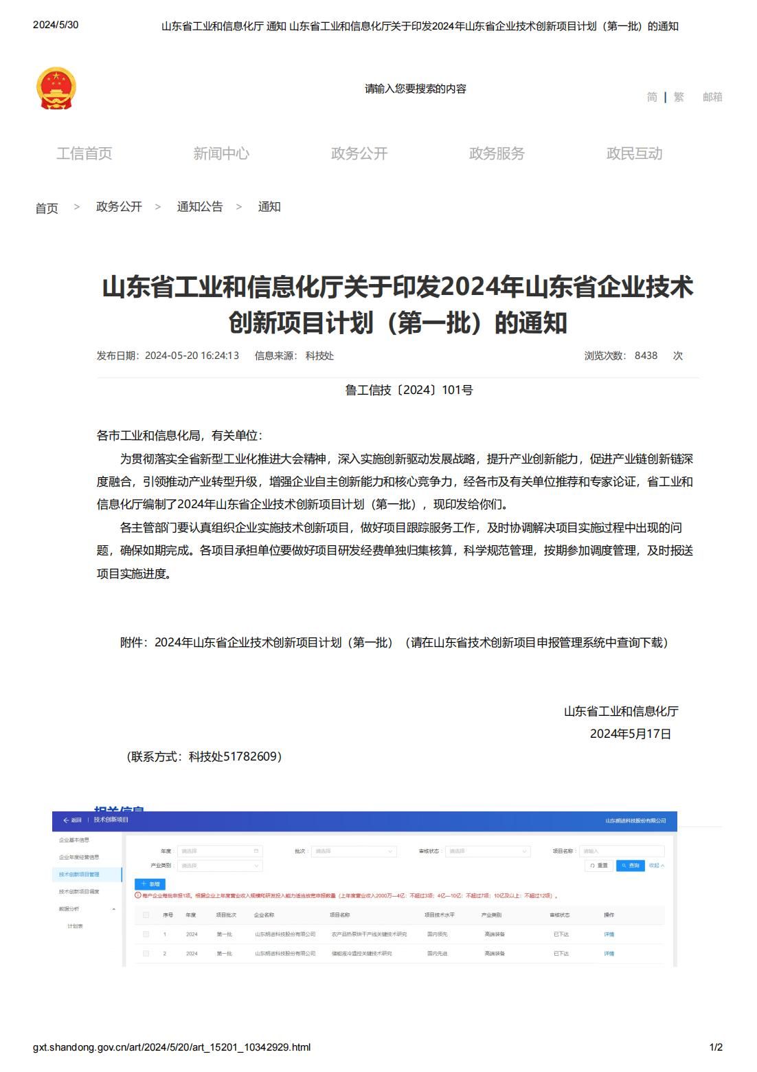 根據山東省工信廳文件顯示,朗進科技“農產品熱泵烘干產線關鍵技術研究”、“儲能液冷溫控關鍵技術研究”兩項技術被列入山東省2024年第一批技術創新項目,此項榮譽的獲得,不僅彰顯了朗進科技在技術創新方面的實力和優勢,更反映出山東省對科技創新的高度重視和支持。